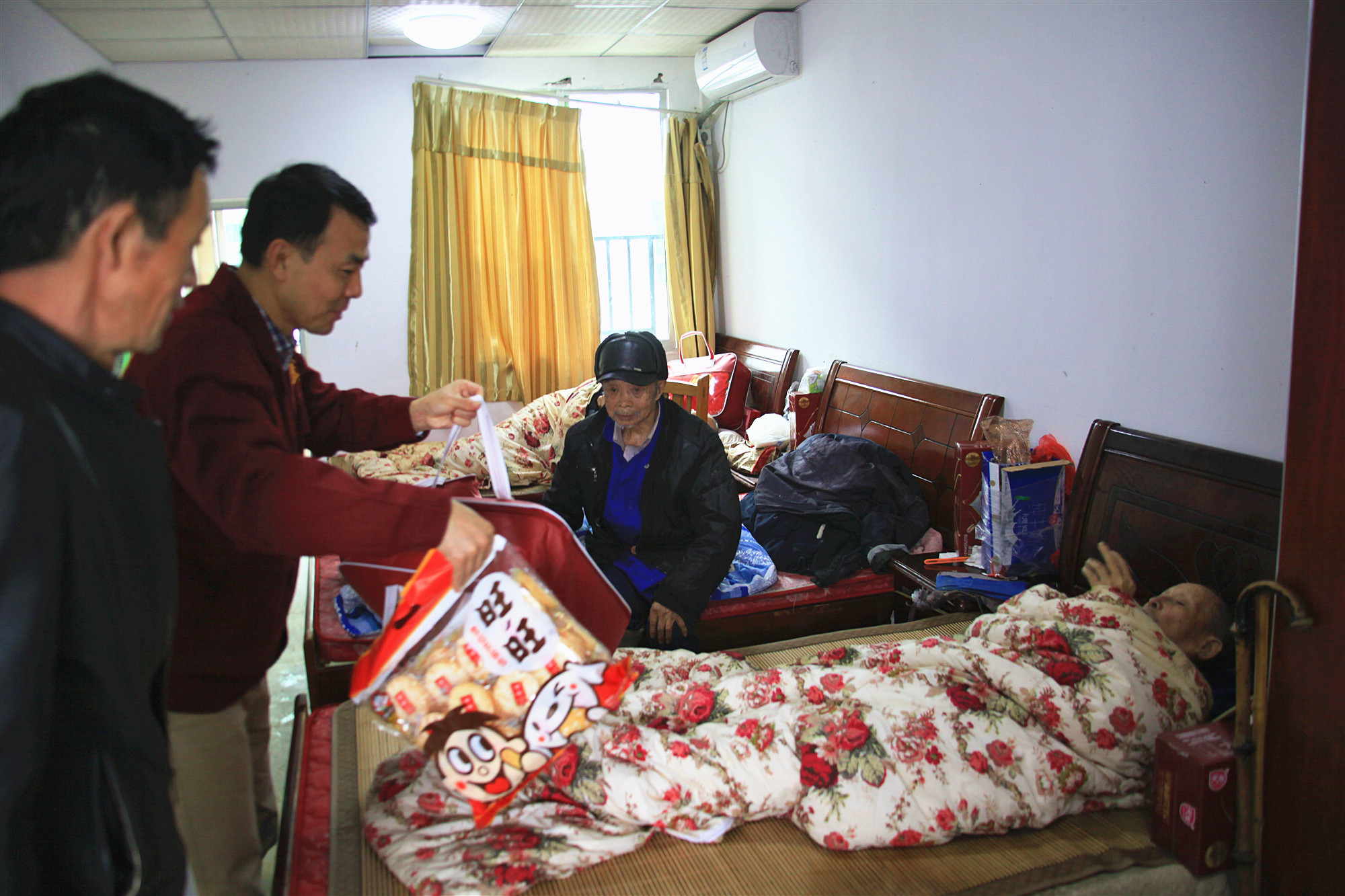 活动中,部分老人因年龄较大或身体疾病行动不便,慰问人员走进公寓看望了他们,并逐人发放了慰问品。